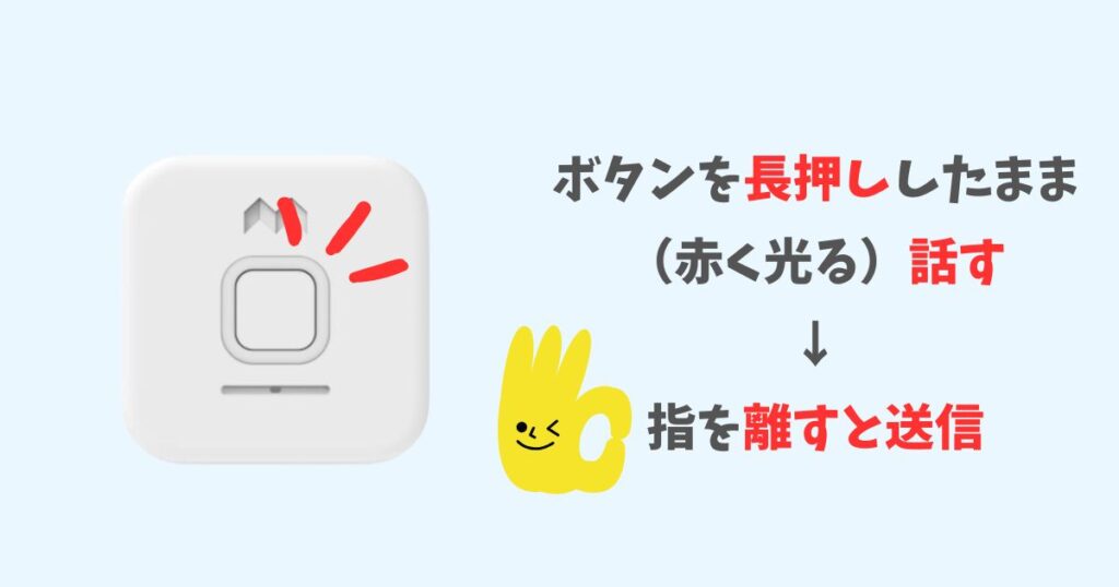 | 利用 方法 | ①再生 ボタン1プッシュ ②録音 ボタン長押し | ①ボタン長押しで 通知 |