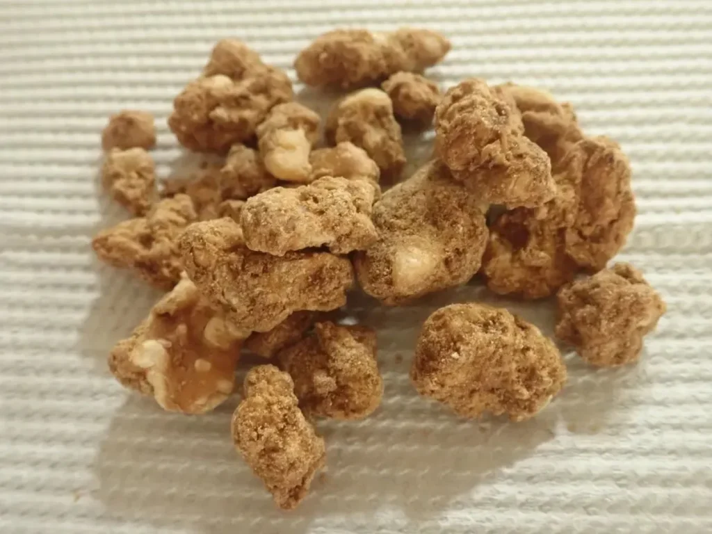 DAISO(ダイソー)の「くるみ黒糖 30g」は、くるみの表面に沖縄産の黒糖がまぶされたお菓子です。