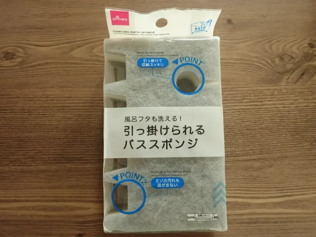 DAISO(ダイソー)の「引っ掛けられるバススポンジ」は、すっきり収納できるお掃除グッズです。
