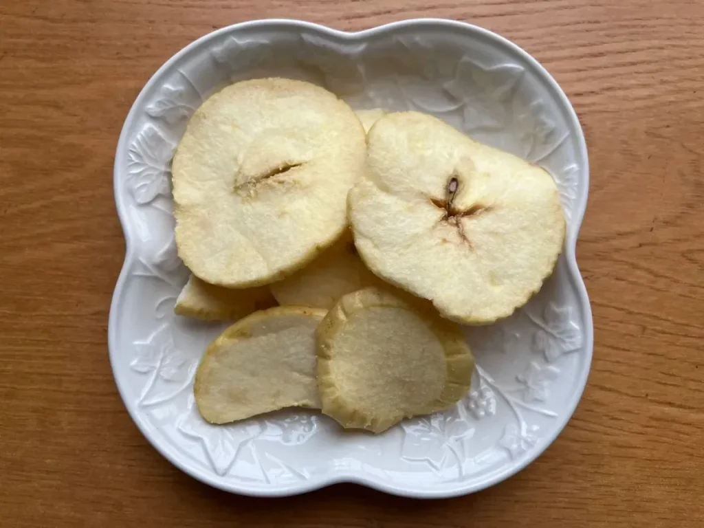 りんごのほか、キウイやもものチップスもあったので、お店でチェックしてみてください。