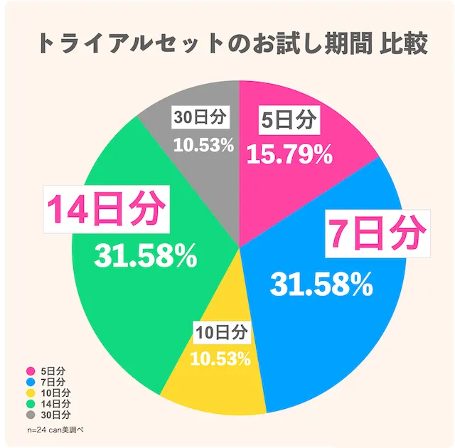 当記事*で紹介する トライアルセットでは、お試し期間最短5日〜最長30日間となっています。