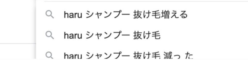haruシャンプーで調べると「抜け毛増える」といったネガティブなキーワードもあり。
