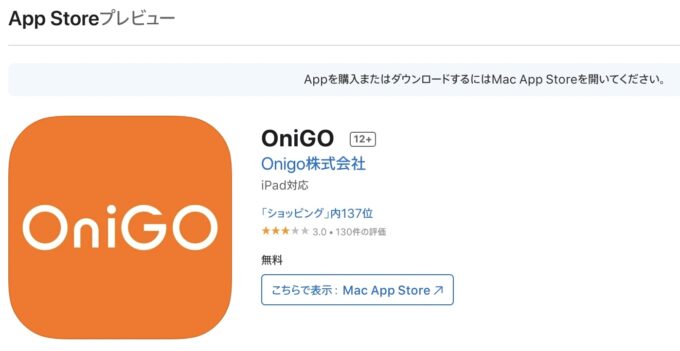 OniGO(オニゴー)注文アプリの評価は上記の通り。