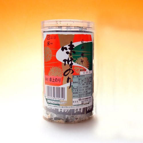 大容量サイズの味付け海苔です。透明な筒形の容器に100枚の海苔が入っています。秘伝の調味液による、ピリッと辛めの味付けがポイント。味付けには醤油・砂糖・昆布エキス・みりん・清酒・唐辛子・エビエキス・食塩などを使用しています。