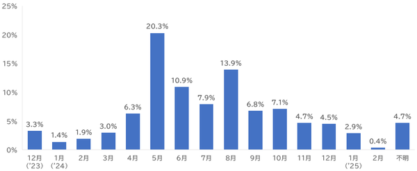 下記のグラフはランドセル工業会が調べた実際の購入時期です。
