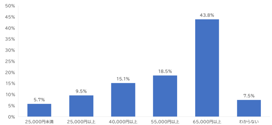 購入金額の平均は¥60,746で、43.8%の方が¥65,000以上のランドセルを買っています。