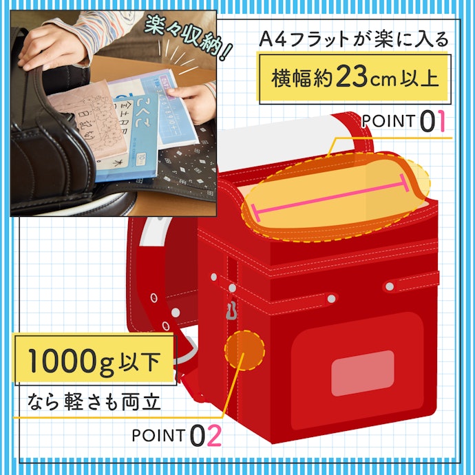 ランドセルを選ぶ際に必ずチェックしておきたい「6つのポイント」をご紹介します。