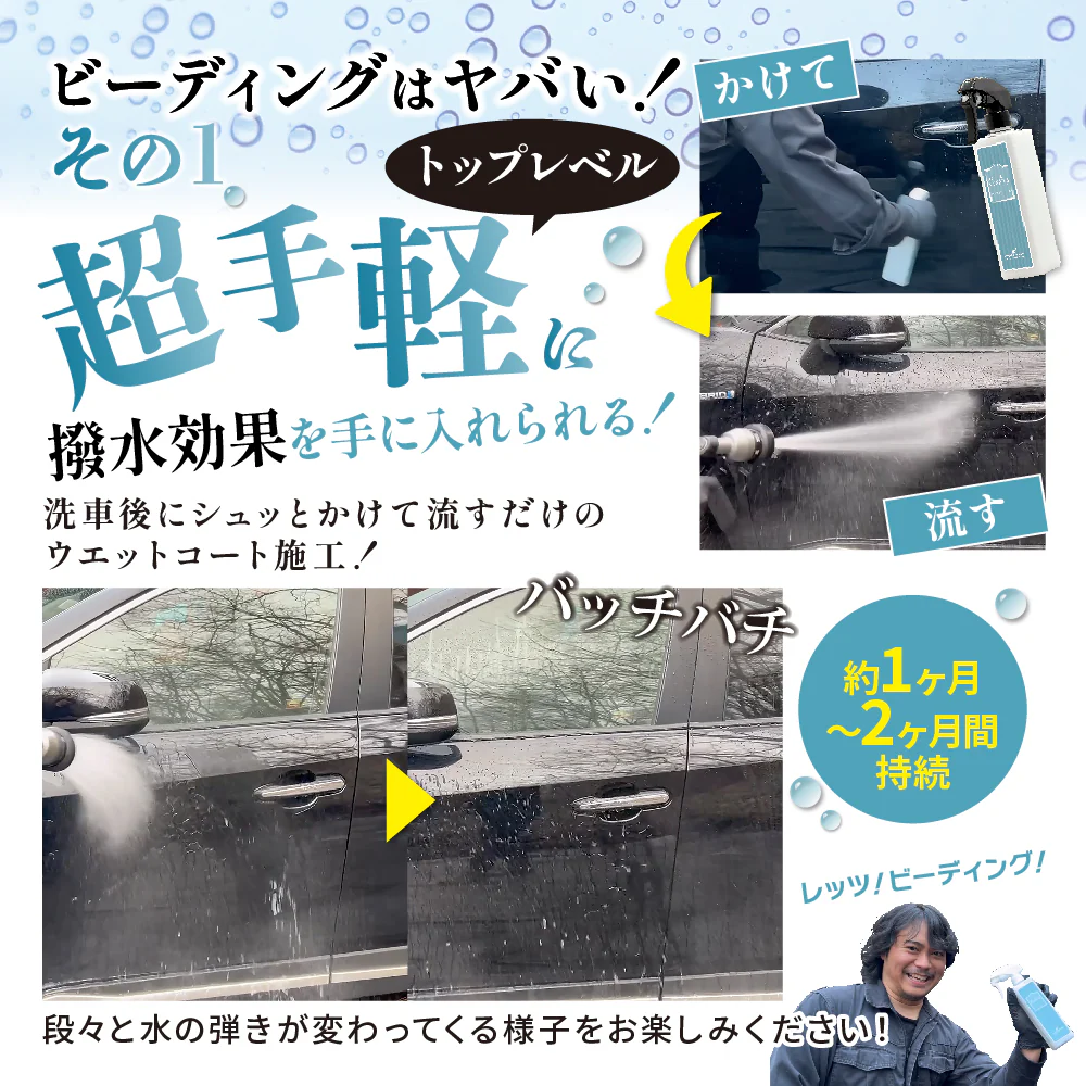 ビーディング 『 窓ガラスやボディにスプレーして流すだけでバーチバチのツーヤツヤ 』