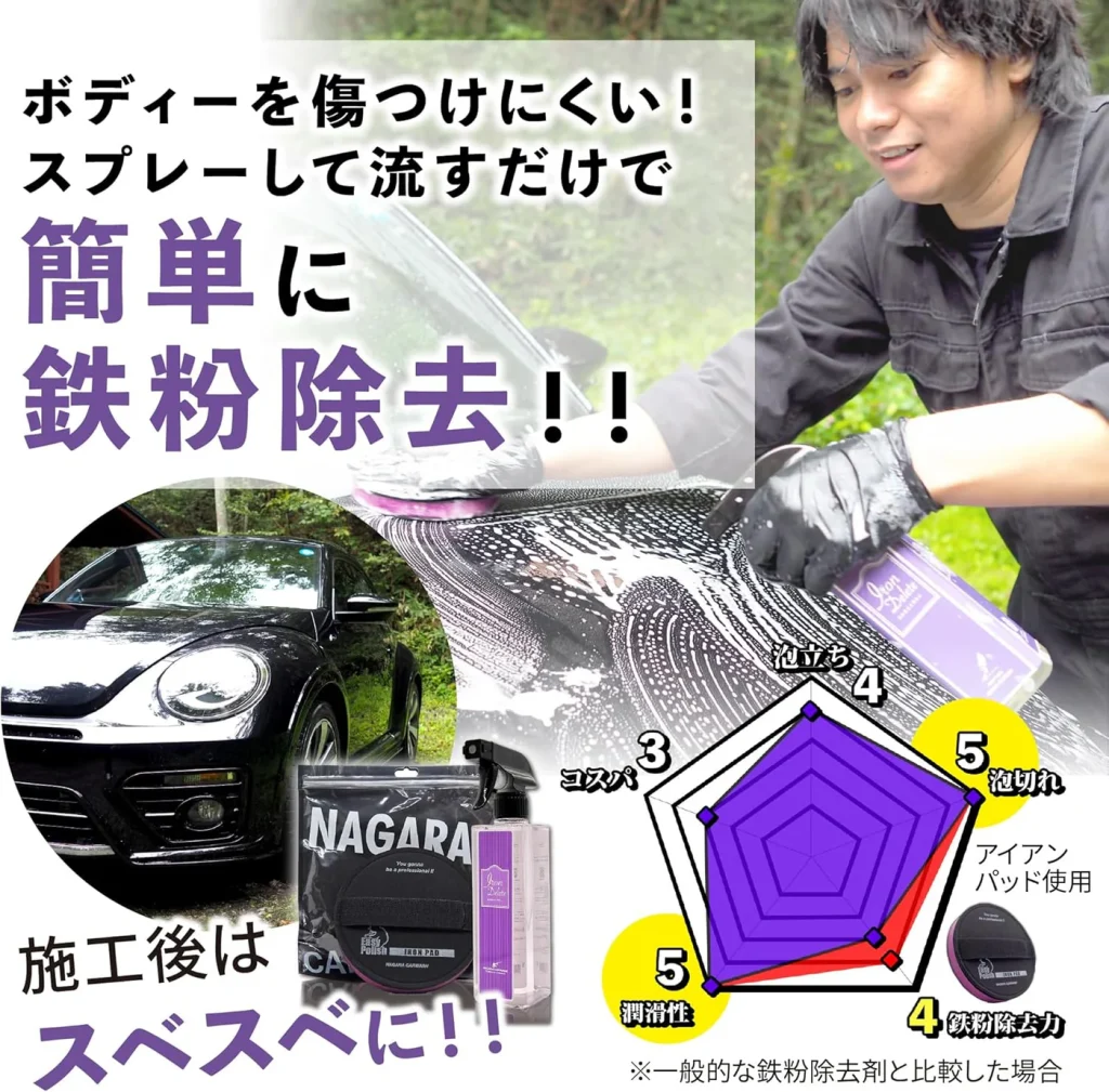 鉄粉が付着した状態ではボディ表面がザラザラしますが、アイアンデリートを使うことで表面が滑らかになり、その後のコーティング効果も引き出しやすくなります。