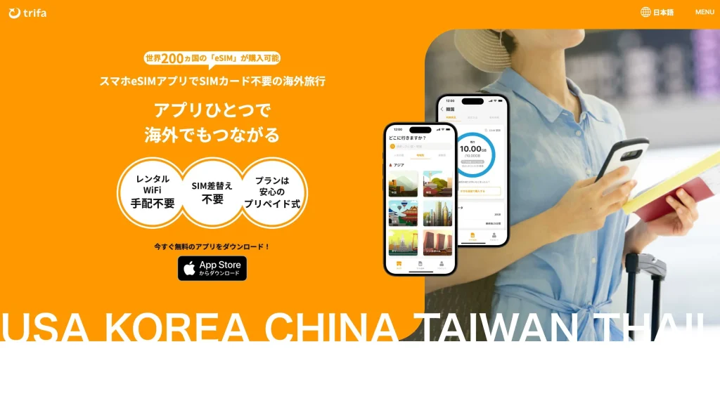 trifaは海外で使いやすい評判で、初めて海外に訪れる方にもおすすめのeSIMサービスです。