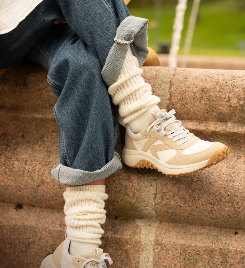 つま先はゆったり、かかとと足首はしっかりホールドされるので、長時間の歩行でも疲れにくいのが特徴です。