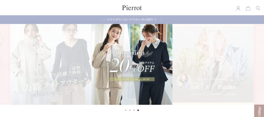 Pierrot(ピエロ)は、30代40代女性に人気のファッション通販サイトです。