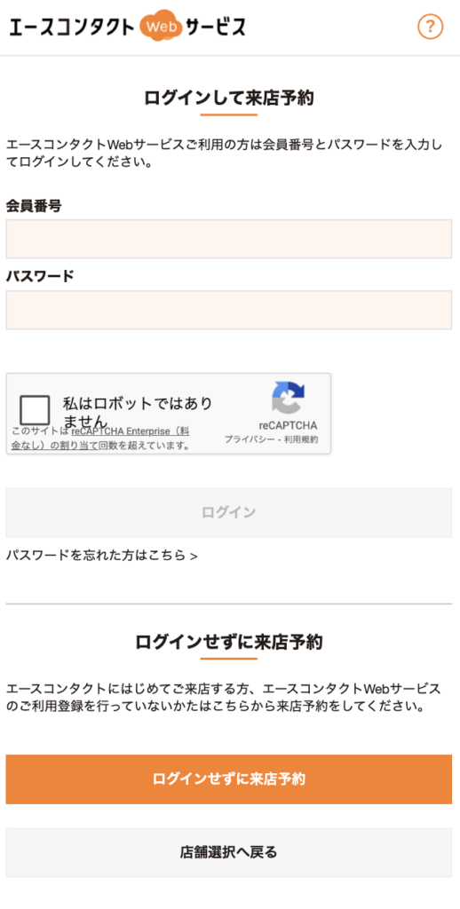 「ログインして来店予約」「ログインせずに来店予約」などのメニューから選びます。