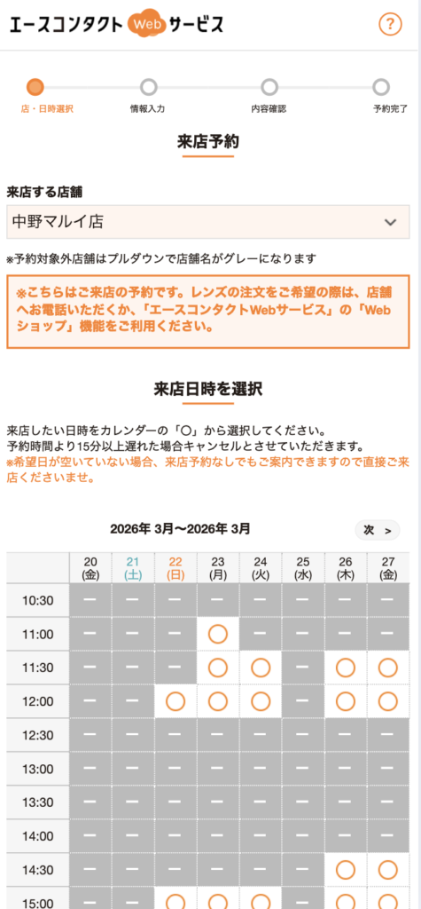 WEB予約をすることで、店舗での受付が優先されます。特に眼科受診が必要な場合でも、予約枠を確保していることでスムーズに検査へと案内されるため、トータルの滞在時間を劇的に短縮できます。