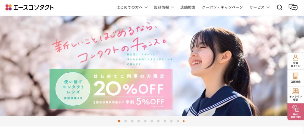 現在、エースコンタクトを初めて利用する方限定で、使い捨てコンタクトレンズ代金が20%OFFになるキャンペーンが行われています。