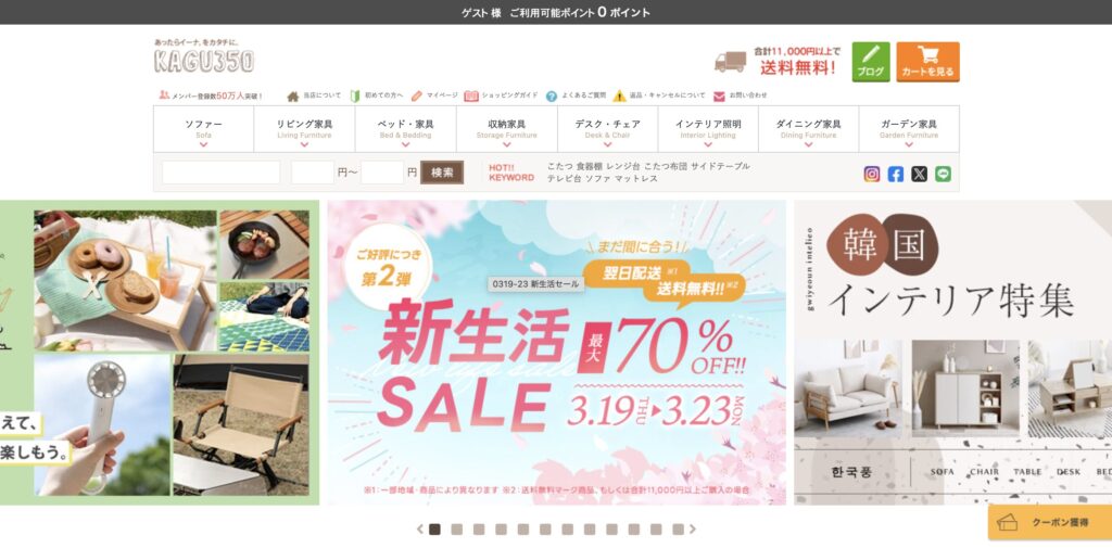 家具350は、家具通販のなかでも売上上位に入る大きなショップです。
