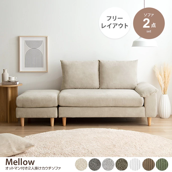 【2点セット】Mellow オットマン付き2人掛けカウチソファ