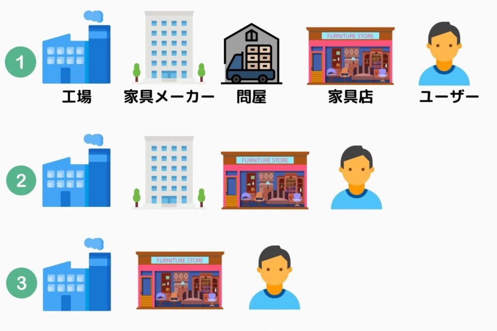 上図②の場合、問屋が介入していません。